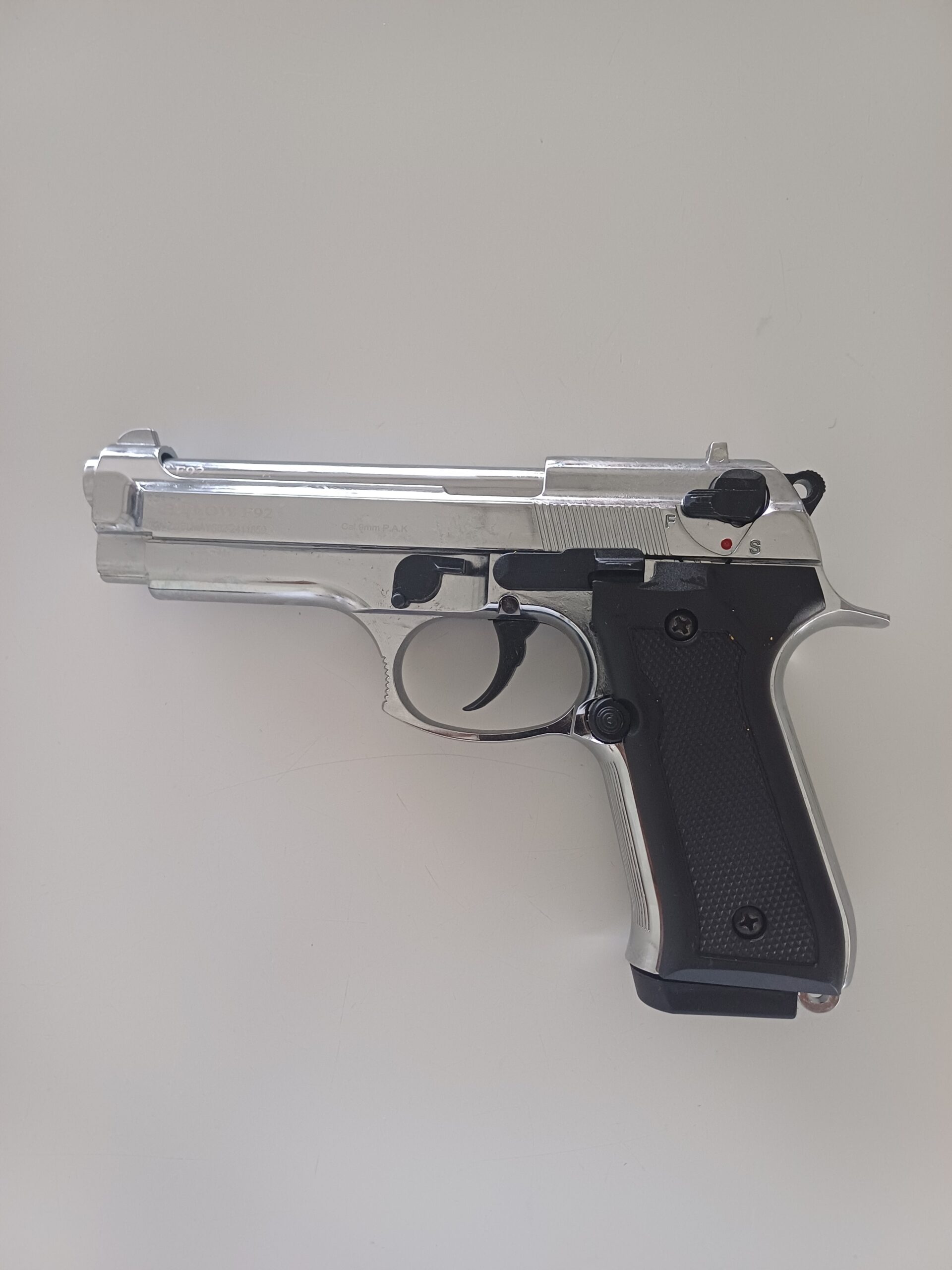 The Blow F92 Shiny Chrome brings together a bright polished look and dependable performance. It feels solid in the hand and works well for film scenes, training and collecting. Its smooth action and shiny finish make it a standout choice for anyone who wants a reliable blank gun with a strong visual appeal.